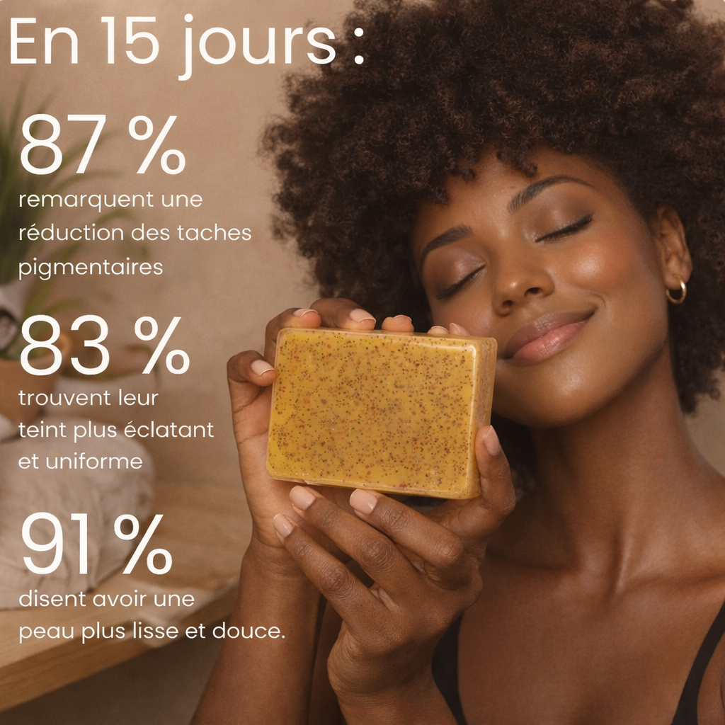 Grâce au savon et aux pads au curcuma GlowKuma, la peau est purifiée et le teint paraît plus uniforme et lumineux. Il aide à révéler une peau plus nette, douce et éclatante