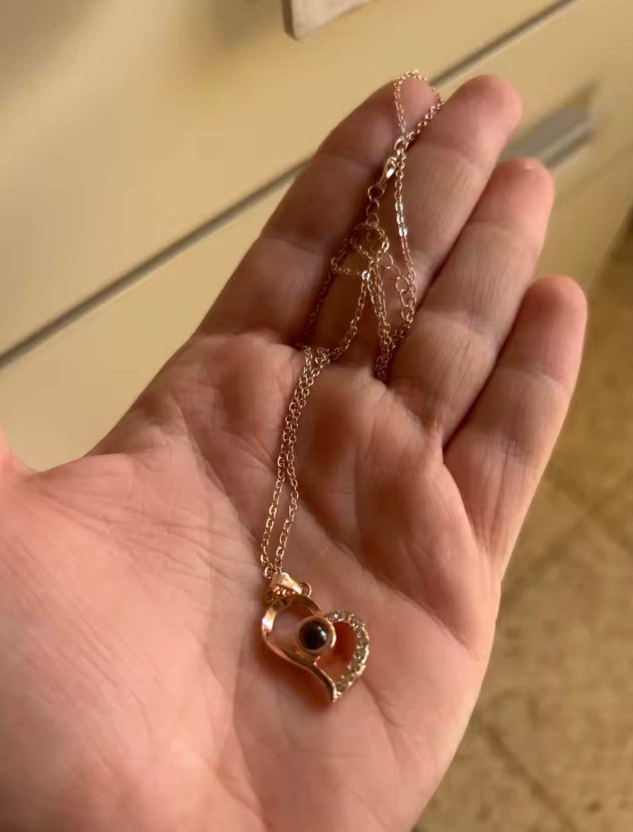 Chaque collier contient une touche intime à l'intérieur avec la photo de votre choix. Jetez un œil à l'intérieur ou utilisez l'appareil photo de votre smartphone pour découvrir l'image cachée.
