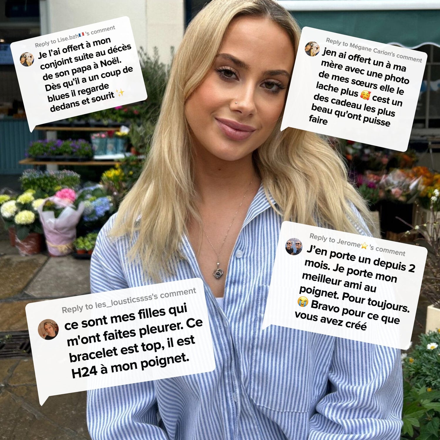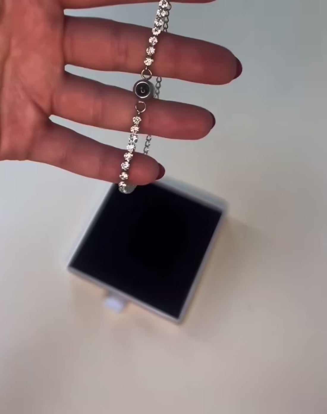 Rejoignez plus de 25 000 clients portant leurs précieux souvenirs à l'intérieur de bijoux. Le bracelet de projection photo vous permet de transporter n'importe quelle photo à l'intérieur; il suffit de regarder à l'intérieur ou de faire briller une lumière pour la révéler.